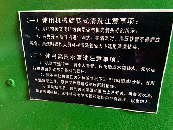 清洗結(jié)束后,應(yīng)先關(guān)閉清洗機(jī)開關(guān),在關(guān)閉水源,關(guān)閉噴槍,這樣才會免除水管和噴槍內(nèi)存有高壓可能傷人的危險(xiǎn)。